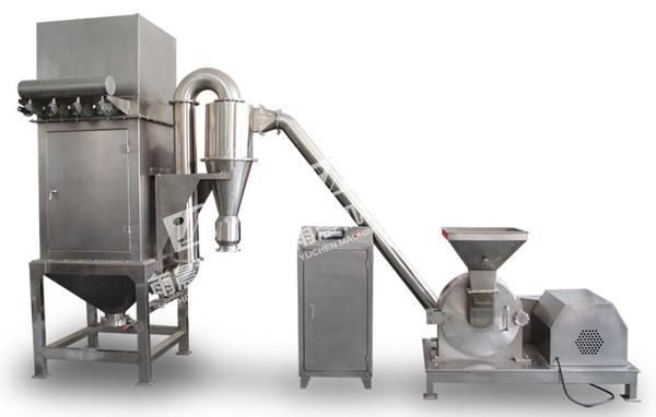 該機(jī)組適用于制藥、食品、化工等行業(yè)。具有風(fēng)冷、無篩網(wǎng)等多種性能,它不受物料粘度、軟硬度及纖維等限制,對(duì)任何物料能起到較好的效果。特別適用于粉碎帶纖維的中藥藥材、帶有一定油脂性的物料。